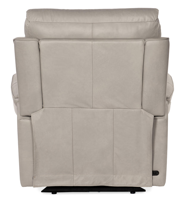 Finally, there�s a casual contemporary recliner that�s stylish and tasteful. Featuring a bustle back and saddle-padded arms, the Lyra Zero Gravity Power Recliner with power headrest is generously scaled with clean lines and top-stitch detailing. Lyra also offers adjustable lumbar support, a USB port and pop-out arm panel with a metal cupholder, and is covered in the Sahara Ash semi-aniline top-grain leather.