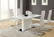 Elevate your dining area with the Anges 5-piece dining set. The contemporary white high gloss finished table features a chrome base for added shine. Complete the ensemble with our iconic Breuer-style chairs, showcasing an ergonomic curved backrest and foam-filled leatherette for ultimate comfort. The U-shaped chrome frame elegantly complements the waterfall edge seat. Available in a range of colors, this set seamlessly merges modern design with unmatched comfort, ensuring every meal is a stylish and comfortable affair. Redefine your dining experience today.
