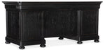 Casual yet refined and stylish, the Bristowe Executive Desk sets a professional and inviting tone for any office space. Crafted of Pecan Veneers in a Tuxedo black paint finish with touches of warm brown, the desk features 7 drawers. The top left and right drawers are on full extension metal ball bearing slides with removable divider inserts. There�s one removable writing slide and one removable pencil drop-in that can be used on either side. Bottom drawers are locking file drawers with pendalfex filing system and full extension metal ball bearing slides. The center drop-front drawer can be used for a keyboard. Finished on all sides. Seven drawers