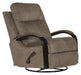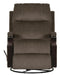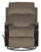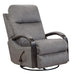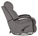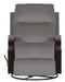 The Niles swivel glider recliner makes a statement in any room. The Niles features a sleek transitional design with espresso finished wood arm accents and soft textured polyester fabric. Comfort wasn't sacrificed for style. The seat is constructed of individually pocketed coils encased in foam and topped with a layer of cool gel infused memory foam for exceptional comfort and support. The back is filled with resilient synthetic fiber. The smooth gliding motion sets the stage for pure relaxation. Full 360 degree swivel allows you to easily maneuver to direct your attention to the TV or to a friend for conversation on either side. Kick back and relax with the heavy duty 250 pound rated reclining mechanism.
