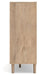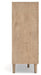 - Framed drawer fronts with textured beige finish that replicates the look of cane