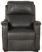 Do you have back pain or just love to relax in weightless comfort? If so, this is the recliner for you! The Reliever Italian leather match Zero Gravity power recliner will without question be your favorite seat in the house! The Reliever boasts multi-intensity settings of kneading therapeutic massage along with power adjustable headrest and lumbar support. The multi-intensity heat adds to the relaxation of sore muscles and is great for warming up on a cold morning. The Reliever has infinite positions so spend some time finding your favorite. The Zero Gravity recline is great for relieving pressure on your spine and reducing back pain. The Zero Gravity position is also shown to improve circulation for pure relaxation. The power adjustable headrest allows you of find the perfect position for TV viewing, reading, or just relaxing and the power adjustable lumbar allows you to customize your lumbar support. All functions are controlled by an easy to operate hand wand with an integrated USB charging port to keep your digital device charged. The wand is easily stored in the pocket located on the side of the recliner. Seating constructed of individually pocketed coils encased in foam and topped with a cool gel infused memory foam creates a comfortable and supportive seating experience. Style wasn't sacrificed for function in this recliner. Supple top grain Italian leather is used everywhere your body touches and a precision matched PU is used on the outside back and sides. Bold stitching completes the transitional styling.