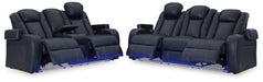 This power reclining seating set goes beyond basic comfort. It upgrades the everyday, turning your living room into an entertainment hub. Don’t want to leave your seat? Keep essentials in reach with assorted charging options, cup holders and storage arms. You can create an even cooler vibe for family movie nights and friendly gaming matches with LED lights. And your sleek style isn’t compromised—its diamond stitching and streamlined arms recall the aesthetics of luxury automobiles.