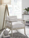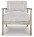 Keep your seating casually cool with this accent chair. The clean-lined design sports a gray finish for a modern appeal, while light neutral upholstery in a herringbone pattern creates textural interest. Antiqued pewter-tone accents add a touch of urban flair, rounding out this relaxed take on contemporary style.