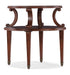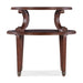 With flair and grace, the two-tiered Charleston Side Table has two surfaces separated by decorative carved wood scrolls in all 4 corners. This distinctive piece has antique bronze metal ferrules on the feet, tapered legs, carved accents and an inlay border on the top. Crafted of Cherry Veneers with Walnut Inlay, it is finished in Maraschino Cherry using natural grain Cherry Veneers showcasing cathedral patterns in the wood. Round shape