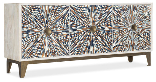 Hooker FurnitureOriginal price $2,094.31Current price $1,619.99| /Create an atmosphere of celebration every day with the uplifting Liberty Entertainment Console, featuring a festive starburst bone inlay pattern in...