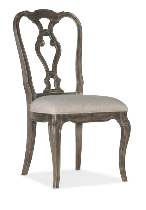 The beauty of this upholstered dining chair is something to savor. Contoured seat cradles you in cushioned comfort while lattice peekaboo detail on...