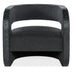 It looks like a piece of decorative art while offering cozy comfort. The Burke Accent Chair is crafted of Pine Veneers in a Charred Black finish, and has an upholstered seat and back covered in Wolf Ebony. The Charred Black finish is achieved through Shou Sugi Ban, a Japanese technique that creates a look resembling burnt wood.