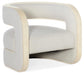 With its organic shape, use of lacquered burlap trim and a light-and-airy neutral color palette, the Cascade Accent Chair upholstered in the cozy Pebble Beach fabric will help you create a comforting retreat from your fast-paced lifestyle. Upholstered seat and back