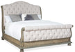 Grand scale and soft, sweeping lines infuse the statement Castella King Tufted Bed with emotion. Upholstered in a beautifully woven multi-dimensional texture fabric in a creamy Natural Tan performance fabric with repeated tufting for a plush appearance, the bed is easily mixed with any color scheme. Acanthus leaf carving detail around the base of the bed adds the final touch of classic appeal to this over-the-top bed. Includes headboard, footboard and rails. Includes headboard, footboard and rails