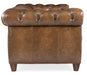 This is the vintage tufted leather sofa you�ve aspired to. Rich and plush with a low back and rolled arms, the sofa combines the walnut-colored Tianran Nature finished leather cover with dark wood legs and is accented with nailhead trim on the arms and base.