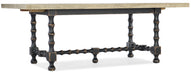 Be transported to a romantic, rustic Italian farmhouse as you dine around the Ciao Bella 84-inch Trestle Table. The base has turned legs and an exquisite black finish with hand-chiseling and wire brushing, and contrasts with a Flaky White top. The two 18-inch leaves extend the table to 120 inches, accommodating up to 10 guests. Beautifully crafted of Poplar Hardwood Solids with Pine Veneers. Includes base and top