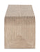 In a tranquil arched rectangle form, the Commerce & Market Bench brings serene style to any space. In a ridged design in a light natural wood finish, the bench has a triangle motif on the bottom of each side.