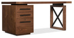 With a craftsman flair, this three-drawer Elon Desk Pedestal is crafted of Flat Cut Walnut Veneers in a Medium Wood finish with dark bronze metal bar pulls. The top drawer has two removable dividers, one writing insert and one removable pencil tray. The second drawer has two removable dividers and the third drawer is a locking file drawer with pendaflex letter/legal filing system. Finished back. Three drawers
