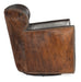 The dramatic silhouette of the Kato Swivel Chair contrasts the rich Debonair Espresso aniline top grain leather on the interior with the Dark Brindle hair-on-hide pattern on the sides and back.