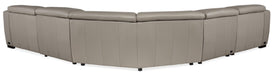 With a sophisticated contemporary design and cloudlike comfort, the Opal 5-piece Sectional is covered in the upscale semi-aniline top grain leather Sorrento Dove. The left and right ends are power recliners and power headrests, and there�s a wood base. Includes SS602-LPH-091 LAF Component, (2) SS602-AL-091 Stationary Armless Component, SS602-CW-091 Corner Wedge & SS602-RPH-091 RAF Component