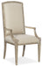 Classic in design and exquisite in comfort, the Cambre Arm Chair will be your go-to place for lingering, relaxing meals and conversations. Delightful details include silver-colored nailhead trim around the seat and back and the serene Le Sable finish, a light wood tone washed with a white and gray glaze. The Metal Diamond performance fabric on the seat and back is a versatile neutral color. Silver-colored nailhead trim