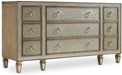 View full detailsLight-catching and sparkly, this two-door, two-shelf mirrored nightstand will infuse your room with beauty and calm. Finished in Visage, an allurin...