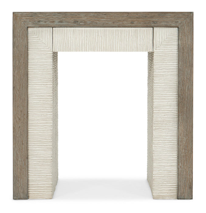 In a crisp two-tone finish combining weathered gray with a textured washed gray color, the Serenity Skipper End Table brings the organic textures of cottage waterfront living to your space. Crafted of Oak Veneers and Resin, the table has one drawer with soft-close drawer guides.