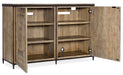 Authentic with an artistic character, the St. Armand Door Chest is crafted of Acacia Solid Wood in a light natural finish with antique bronze metal trim. Featuring two doors with soft-close hinges and two adjustable wood shelves behind each door, the chest is media-ready with a ventilated back panel. Two doors with soft-close hinges