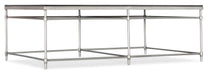 Light and airy and modern and minimalistic, the St. Armand Rectangular Cocktail Table features a top crafted of Acacia Solid Wood in a distressed black finish with a lightly-scaled metal base and legs in a brushed pewter finish. Rectangle shape
