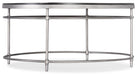 Minimalist and modern, the St. Armand round cocktail table is filled with character. Crafted of Acacia Solid Wood in a black rustic finish, it features a lightly-scaled metal base with spherical stretchers at the top and bottom in brushed pewter metal. From outside leg to outside leg, the table measures 37 inches wide.