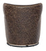 Featuring a textured, layered look in a warm and earthy color palette, this CC swivel chair is upholstered in contrasting leathers, with a solid semi-aniline top-grain leather on the inside and Kenya Hearth aniline top-grain patterned specialty leather on the outside. Adding drama is a flared wing-back style and brass nailhead trim around the side, back and base. Swivel motion