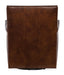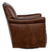 Warm and welcoming in a bold silhouette with angular arms trimmed in nailhead, this swivel chair is covered in the soft and sumptuous Aryanna Caramel Popcorn aniline top grain leather upholstery. Brown leather upholstery