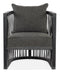 Modern, sophisticated and organic, the Wilde Club Chair has a distinct U-shaped frame in a charred and distressed black finish that is achieved through Shou Sugi Ban with top-grain leather strapping all the way around. There�s a tight seat and loose pillow back upholstered in Lovegood Kohl. Loose back pillow