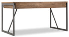 Industrial style meets craftsman design in this writing desk constructed of Mango Wood with iron accents and a gray metal frame�and diagonal stretchers. The desk features 3 drawers, a center drawer with a drop-front, 2 utility drawers with one removable pencil tray and a writing insert for use in either drawer. Both drawers have 3 removable dividers.