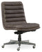 In a slim and sleek modern silhouette, the armless Wyatt Executive Swivel Tilt Chair has a channeled seat and back upholstered in the Memento Medal aniline top-grain plush leather. Metal base and casters.