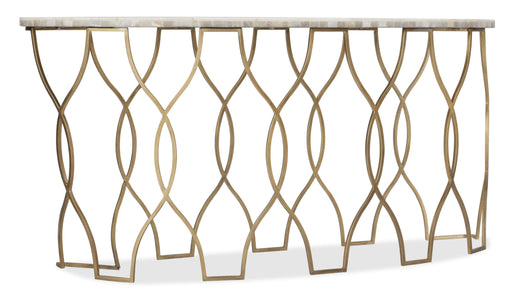 Add a sparkle of timeless Art Deco style to any living space with the M�lange Corrina Sofa Table, blending a gold-leaf metal fretwork base with a...