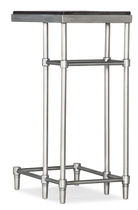 Cool, modern and convenient, the St. Armand Chairside Table is designed in a C-shape to allow it to be pulled up and underneath and over a chair or sofa. This airy piece combines Acacia Solids in a rich black finish with a metal base finished in a pewter color.