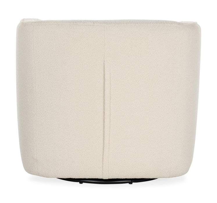 Take refuge in the cloud-like Bennet Swivel Club Chair in a modern tub-like shape with tight seat and back, and covered in the ultra-soft creamy white Woolly Linen fabric. Tight seat and back