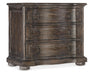 Suggestive of furniture found in rural England in the 17th Century, the Traditions Three-Drawer Nightstand has serpentine-shaped drawer fronts and aged pewter-finished ring pull hardware. Crafted of Pine Veneers, the nightstand is finished in Maduro, a rich brown with grey undertones. The top drawer has a removable black felt liner, the bottom drawer is cedar-lined and all drawers have soft-close drawer guides. Features FC707 power bar with 3 electrical outlets and one live USB port. There are two touch switches on the left and right sides of the back panel and a wire clip on the top center of the back panel.