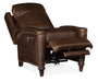 Curved arms, rounded posts and a shaped wing back trimmed in nailhead add distinction to the Rylea Power Recliner Chair with Power Headrest. The stylish recliner combines the Valencia Arroz aniline top grain leather in a soft brown color with dark wood spool feet. Includes USB port to charge your device while you relax. Traditional/Formal styling