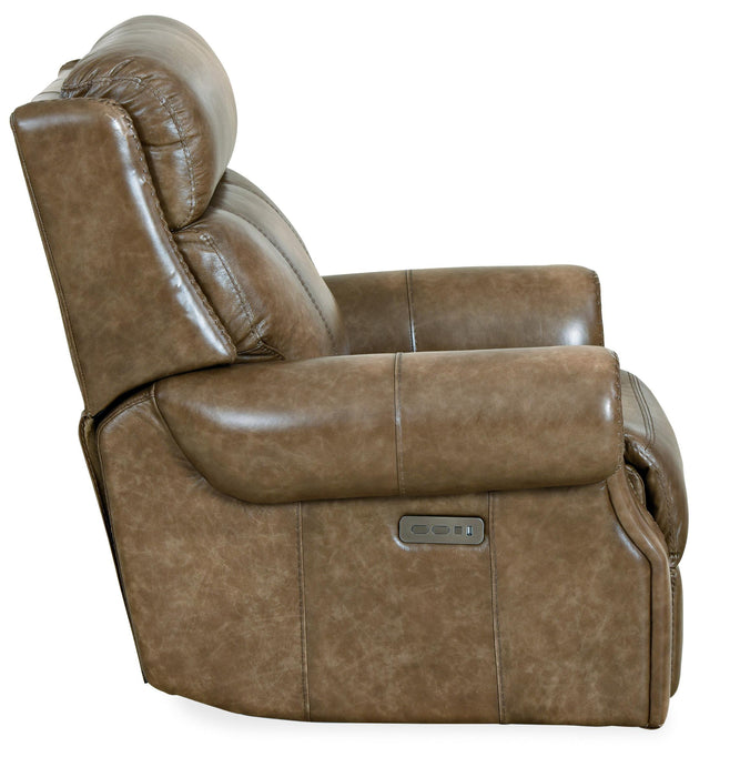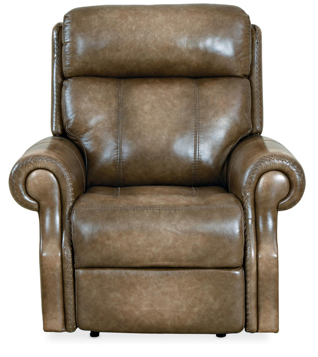 In a softly rounded and welcoming silhouette, the Brooks PWR Recliner w/PWR Headrest features a bustle back, rolled arms, baseball stitching detail around the arms and a modified wind back. The premium Tianran Nature is a finished top grain leather for durability and cleanability and handwiped for surface beauty. Includes USB port to charge your device while you relax.
