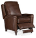 Curved arms, rounded posts and a shaped wing back trimmed in nailhead add distinction to the Rylea Manual Pushback Recliner Chair. The stylish manual recliner combines the Valencia aniline top grain leather in a soft brown color with dark wood spool feet. Traditional/Formal styling