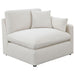 Complete your spacious modern living room with this beautifully designed modular sectional, featuring soft, textural fabric. Feather blend-wrapped box cushion seating with reversible cushions and topstitched details, paired with a thin track arm design, create a sleek, modern aesthetic to elevate your family room and beyond. Matching accent pillows and plush back cushions add extra comfort, nestled against the sloped track armrests. This sectional is perfect for complementing your existing decor, welcoming neutral tones, or providing a sophisticated backdrop to vibrant colors.