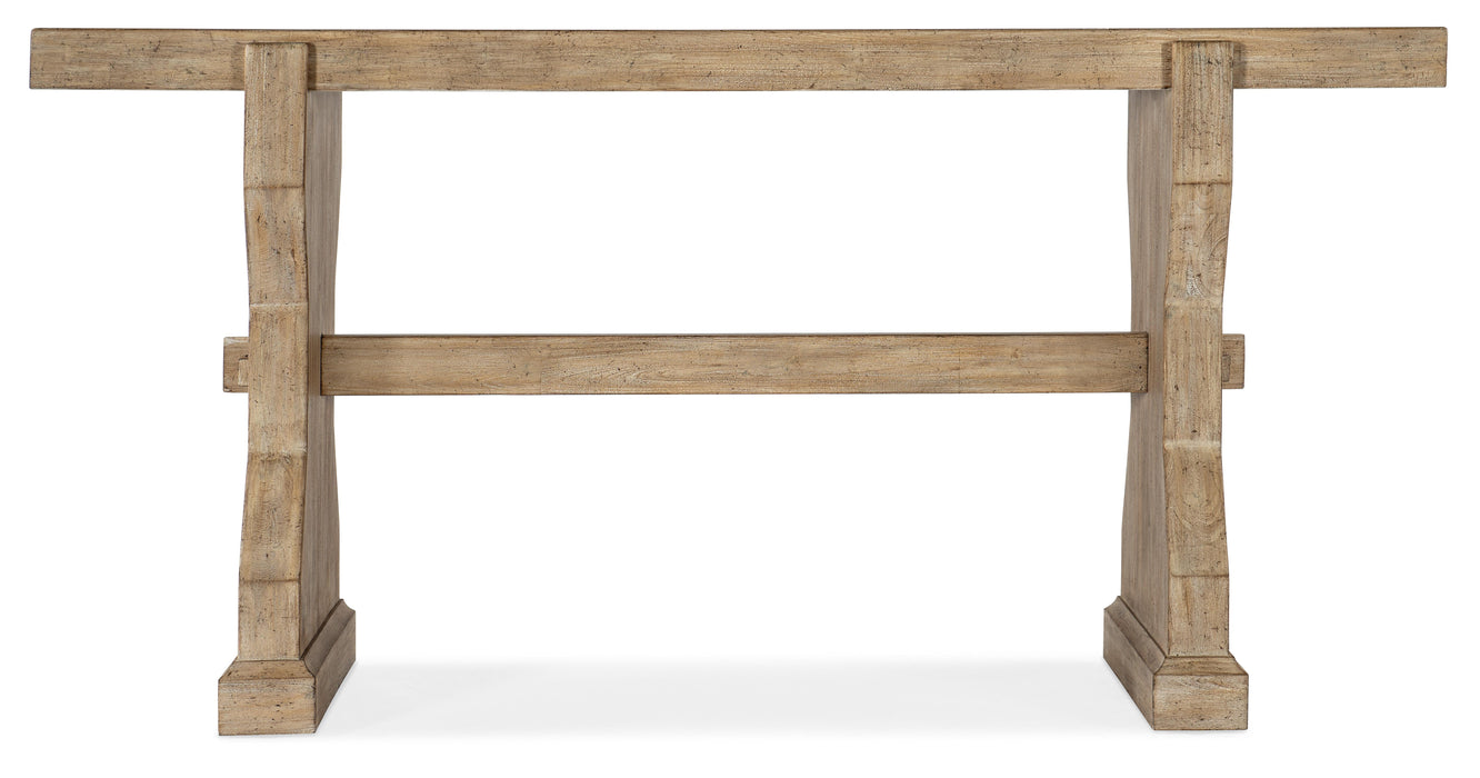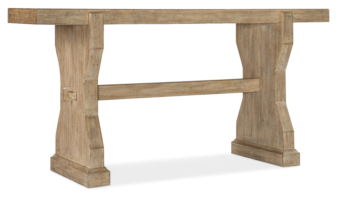 With a look of primitive-style craftsmanship, the casual Commerce & Market Sofa Table is crafted of Acacia Wood with a natural finish and has a rectangle shape, interlocking stretcher design.