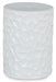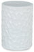 Inspired by modernist sculpture, this contemporary accent stool is an homage to the power of art. Ideal for any outdoor or indoor living space, it features bold irregular patterned sides and a minimalist matte white finish, creating an instant aura of forward-thinking flair.