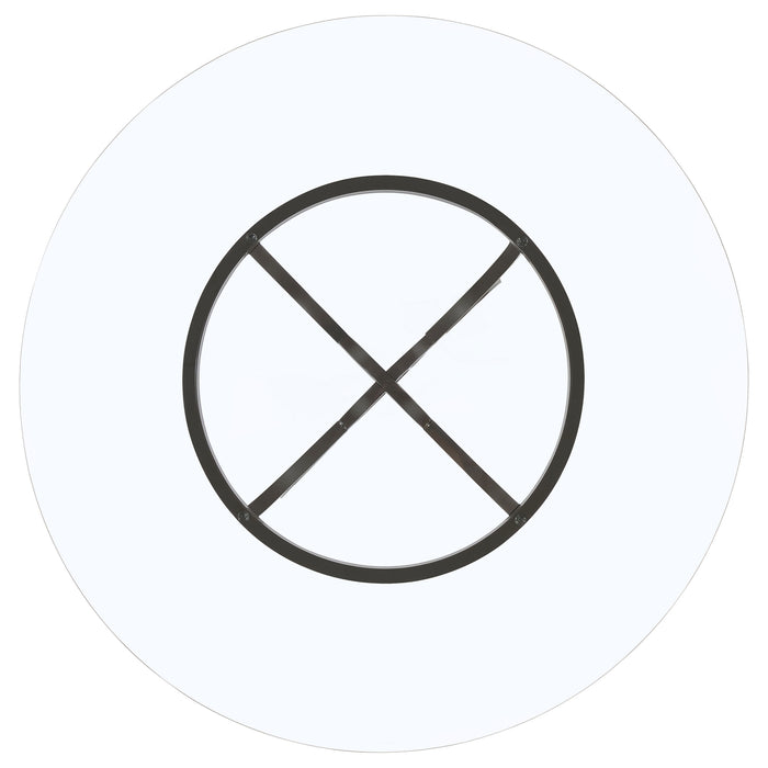 Aviano presents a contemporary dining masterpiece that's truly captivating. The meticulously crafted metal table base boasts four curvaceous legs converging around an interlocking ring waist, adorned with a surprising gunmetal finish. Crowned with a 6mm 48" diameter clear tempered glass, it seamlessly blends grace and modernity. Discover the allure of the transitional glass dining table, exuding casual charm. Its clear glass round elegantly rests on a captivating base with four stylized M legs, artistically interlocked in a ring motif and adorned with a rich gunmetal finish. At 30 inches, it's the perfect addition for a chic breakfast nook or a stylish eat-in kitchen, infusing a touch of timeless elegance.