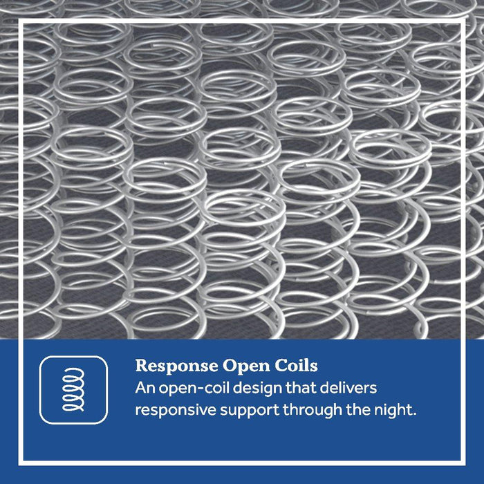 - Response™ Open Coils combine with an added gel foam comfort layer to deliver an on-the-bed feeling, for a great night’s sleep at an affordable price. Available in a Soft or Firm feel.