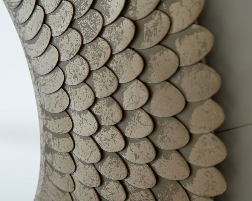 Lighten the mood of your living space. Dazzling with its layered sunburst-style frame, this accent mirror serves as a striking focal point for wall decor. A champagne-colored foil finish reflects your contemporary taste.