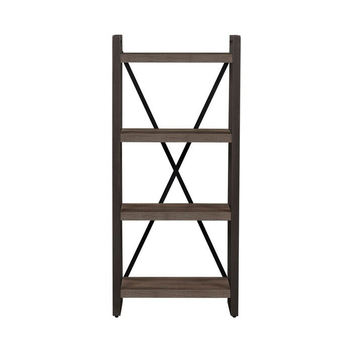 Liberty Furniture Tanners Creek Pier Unit in Greystone 686-EP60. Maximize storage and convenience with the Tanners Creek pier unit. Crafted with melamine and rubberwood solid frame, this piece features a rustic Greystone finish floating shelf design and a decorative metal "X" accent on the back supported by open legs in a dark pewter faux metal finish. The melamine is scratch resistant, sure to make this piece last in any home. Pair with the 63" or 76" tv console to complete the set, or utilize this piece as shelving, as it can stand alone.