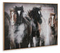 This wall art expertly captures the natural beauty and strength of equine movement. Balancing masculine sensibilities with the charm of farmhouse motifs, it’s a statement piece that works equally well staged with other subtle wall decor. Neutral hues give it the versatility to pair effortlessly with your existing furnishings.