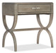 Sleek and sophisticated, the Affinity Leg Nightstand blends a simple one-drawer top with a pewter and antique white bar pull with an intriguing base combining rounded X-motif legs and a center stretcher. Crafted of Oak Veneers, the nightstand is finished in a wire-brushed greige and antique white finish. One drawer