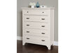 Vaughan-Bassett Bungalow 5 Drawer Chest in Lattice 744-115. Bring Bungalow charm to your bedroom with this five drawer chest for clothing storage. Elegant and functional, this chest features with custom-designed drawer hardware includes cup pulls & knobs.